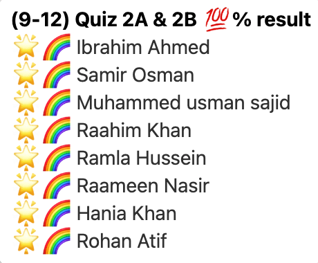 Quiz 2 Superstars – Ages 9-12 Posted byNurun-Ala-NoorFebruary 27, 2021Posted inQuiz Results Quiz 2 Superstars (9-12) Share this: Click to share on X (Opens in new window) X Click to share on Facebook (Opens in new window) Facebook Like Loading... Related