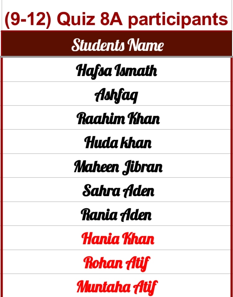 Quiz Results 9-12